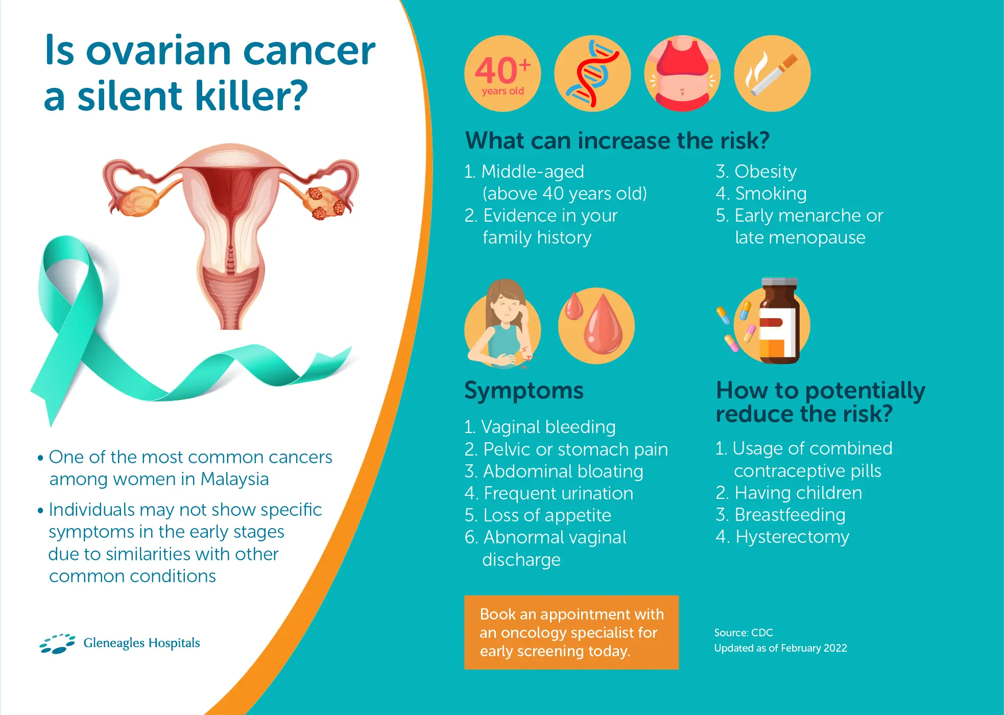 Early ovarian cancer detection makes treating the disease more effective with appropriate treatment. The caring and multidisciplinary team of healthcare professionals are available for consultation and to provide the best care.