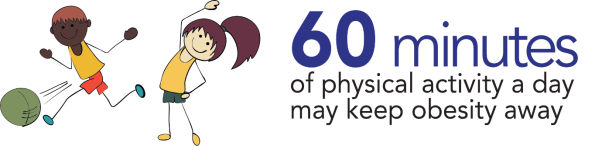 Kids need about 60 minutes of physical activity each day. It does not have to happen all at once. Several short periods of activity during the day are just as good.