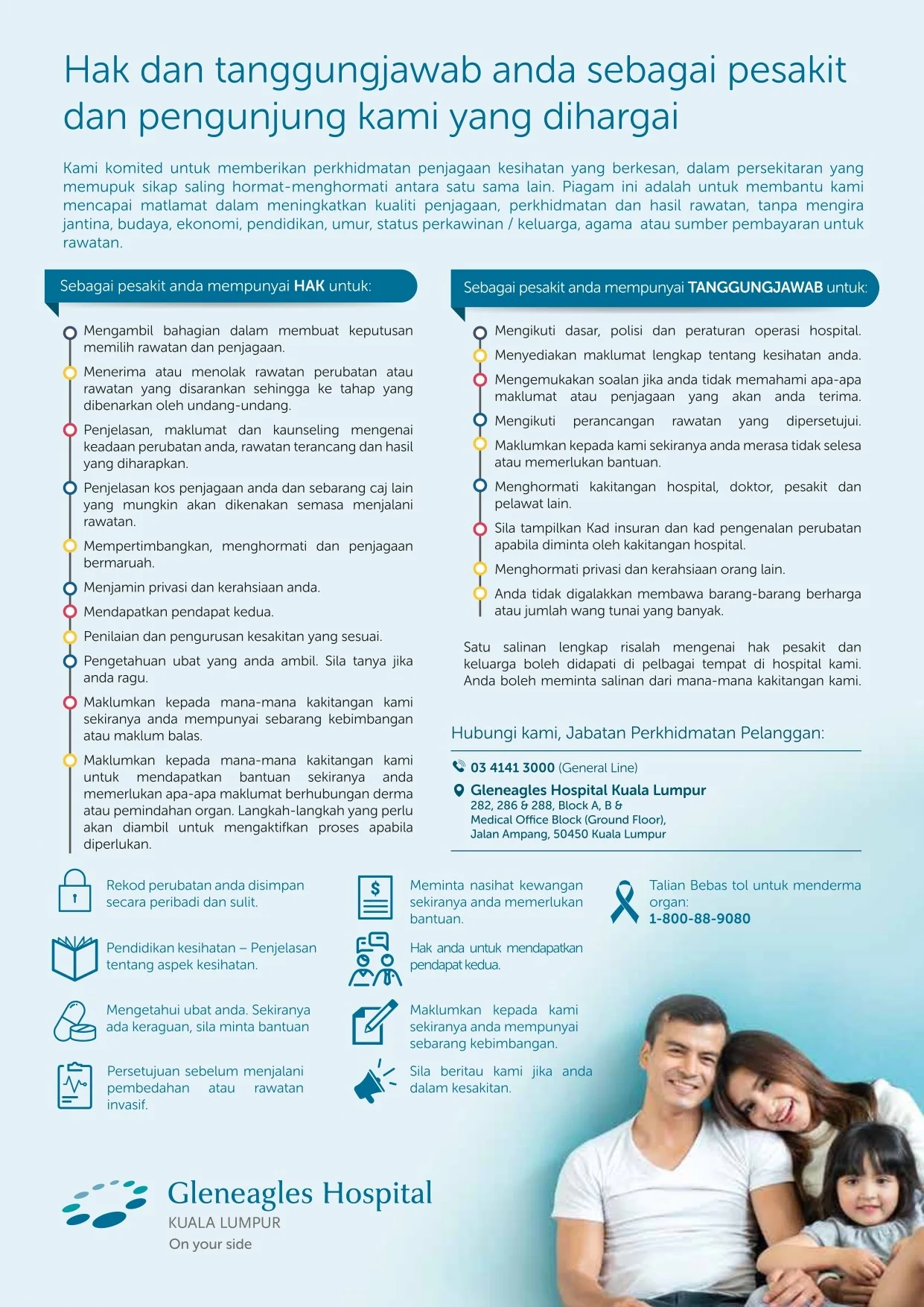 Untuk melindungi pesakit dan petugas kesihatan kami, Hospital Gleneagles Kuala Lumpur mengamalkan dasar pelawat yang berikut: