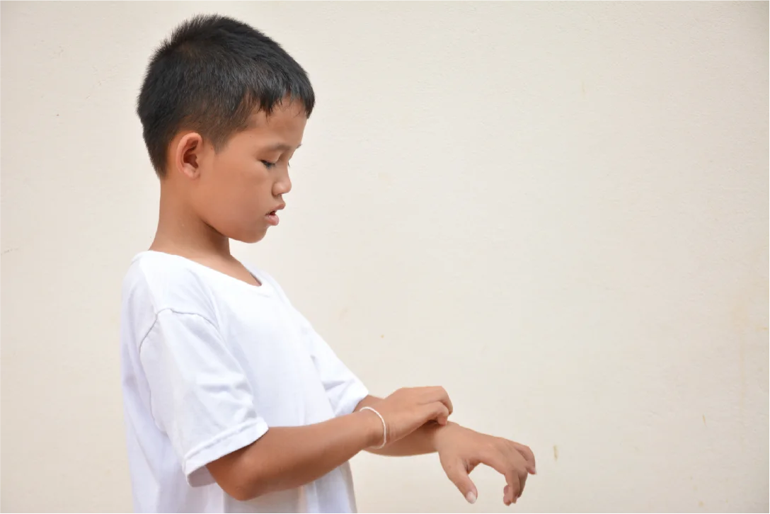 B) Encourage the child to continue using the affected hand.