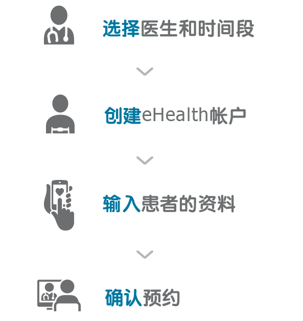 *只有特定的医院有为新的患者提供eHealthConsult服务。请游览鹰阁医院的eHealth网站以了解更多。